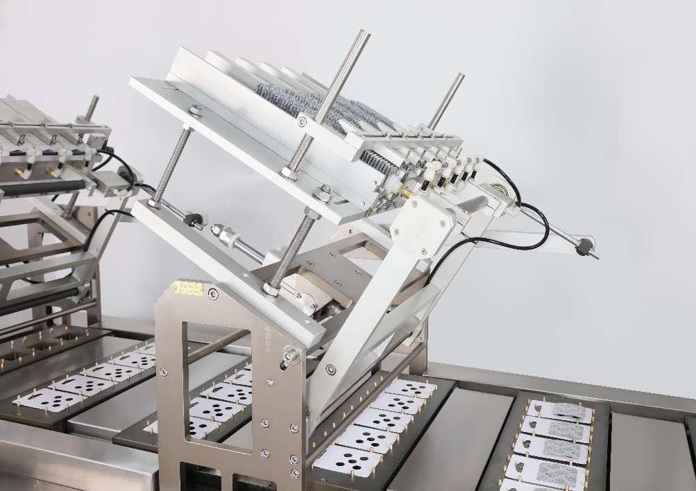 • Adjustable card and blister feeding stations with movable sliders enable rapid size adjustments without tools.